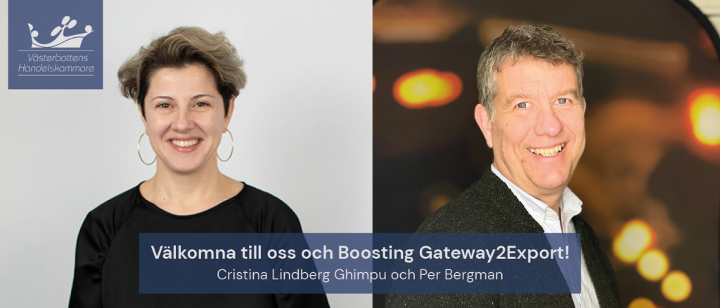Nu finns våra nya resurser på plats för att stödja Västerbottens företag i deras exportsatsningar. Genom vårt projekt Boosting Gateway2Export vill vi se till att många fler små- och medelstora företag i Västerbotten kan få rätt hjälp och stöd i sina exportsatsningar. Står ni inför en ny eller utökad exportsatsning eller behöver veta var ni skall vända er med era specifika frågeställningar så kan vi genom detta erbjuda ett kvalificerat och behovanpassat stöd till varje enskilt företag.
